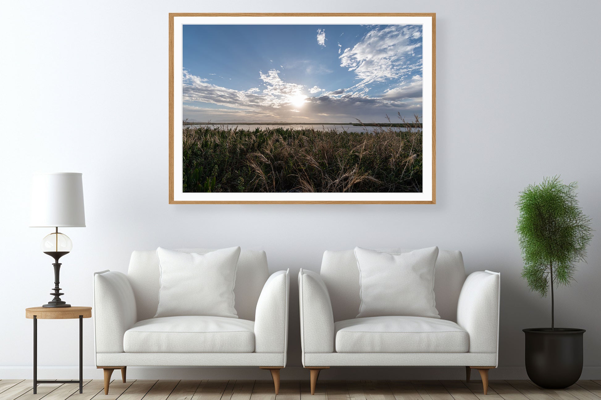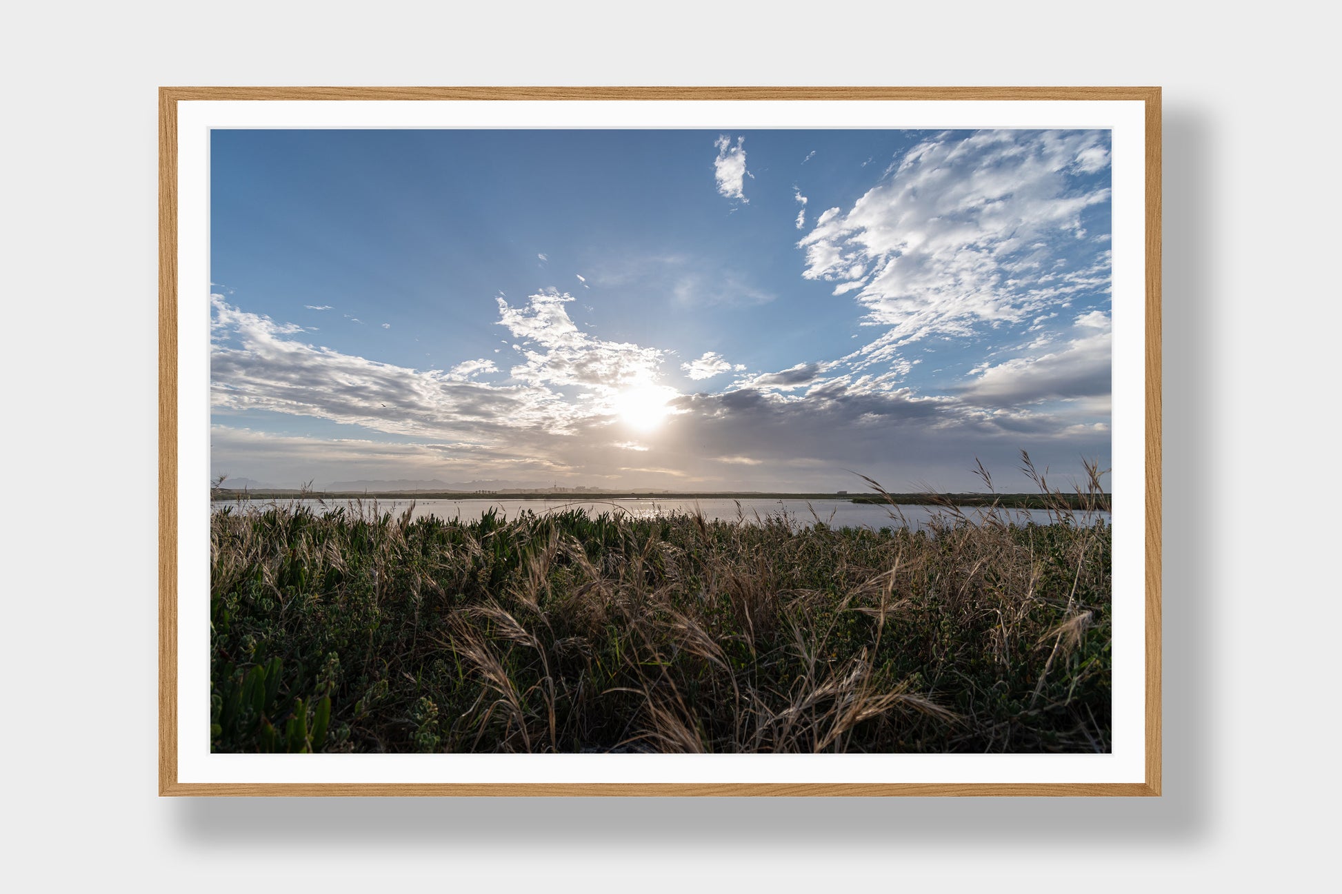 Dawn's Embrace is a serene colour fine art photograph capturing an overcast sunrise gently illuminating both land and water. Soft, muted tones blend sky, lake, and earth in a peaceful, atmospheric scene. Printed on premium archival paper, this artwork brings a sense of calm and quiet reflection to any space.